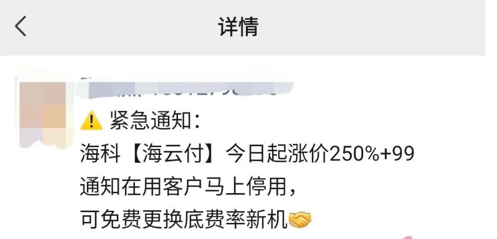 海云付POS機費率暴漲(刷一萬扣250+99流量費)