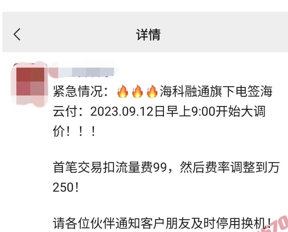 海科融通旗下電簽海云付:2023.09.12日早上9:00開始大調(diào)價!!!