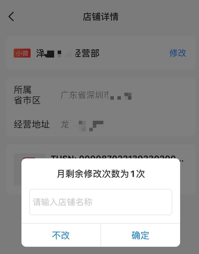 登陸商戶小程序-首頁-商戶名稱,此處變更,一天可修改一次