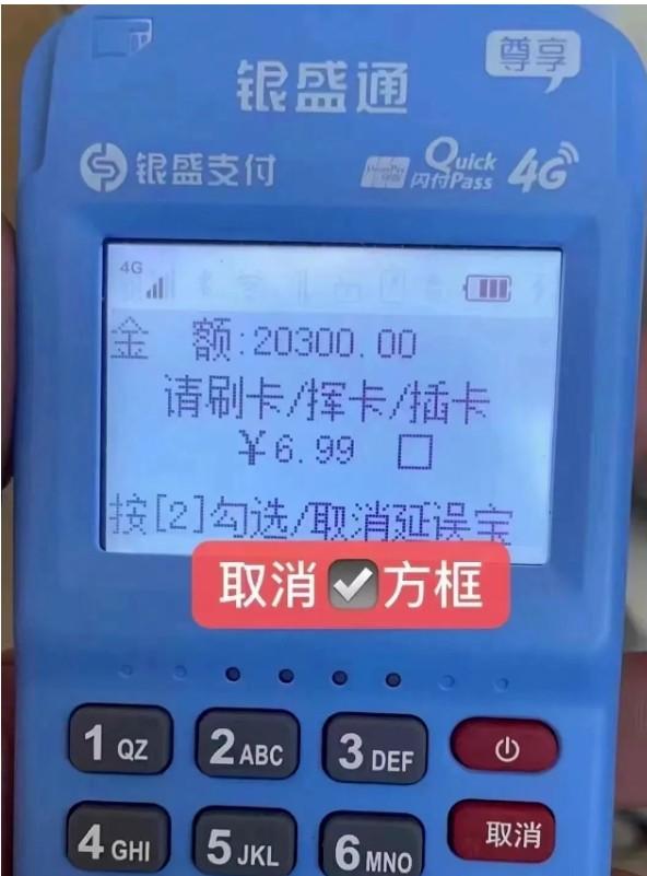 過去,使用銀XPOS機進行交易時,默認是不勾選保險費的,開通需要在屏幕上點擊打鉤確認,但現(xiàn)在卻悄悄地變成了默認勾選狀態(tài)。