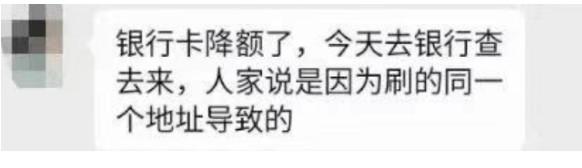 25號同樣接到用戶反饋,自己的信用卡被降額了,打電話問發(fā)卡行客服,給出的答復(fù)是:總是在同一個商戶上消費,導(dǎo)致信用卡被降額。