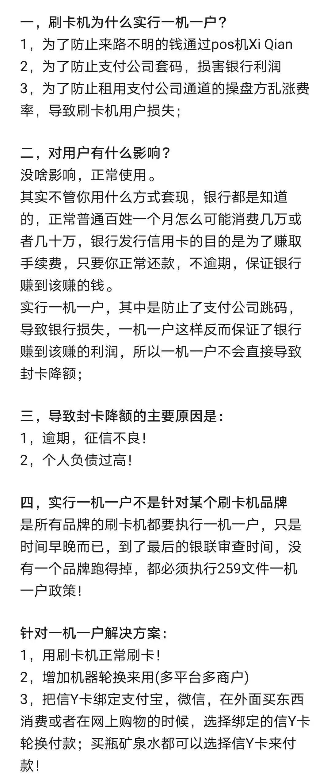 一機(jī)一戶會(huì)不會(huì)封卡降額?針對(duì)一機(jī)一戶解決方案 拉卡拉 2年前 ( 2023-10-31 ) 580 一機(jī)一戶究竟會(huì)不會(huì)封卡降額?眾說(shuō)紛紜,說(shuō)一點(diǎn)影響都沒(méi)有的絕對(duì)不可信,針對(duì)一機(jī)一戶必須要有相應(yīng)的解決方案! The End 標(biāo)簽:博主很懶,并沒(méi)有設(shè)置標(biāo)簽