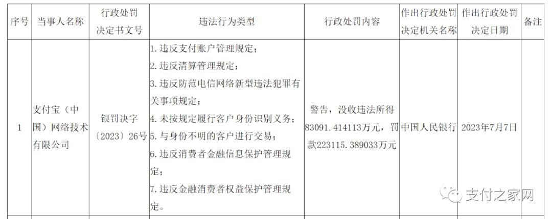 處罰事項(xiàng):1.違反支付賬戶管理規(guī)定;2.違反清算管理規(guī)定;3.違反防范電信網(wǎng)絡(luò)新型違法犯罪有關(guān)事項(xiàng)規(guī)定;4.未按規(guī)定履行客戶身份識(shí)別義務(wù);5.與身份不明的客戶進(jìn)行交易;6.違反消費(fèi)者金融信息保護(hù)管理規(guī)定;7.違反金融消費(fèi)者權(quán)益保護(hù)管理規(guī)定。