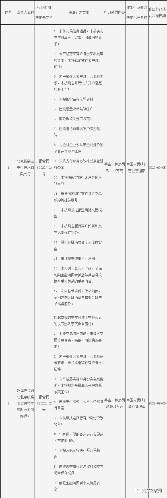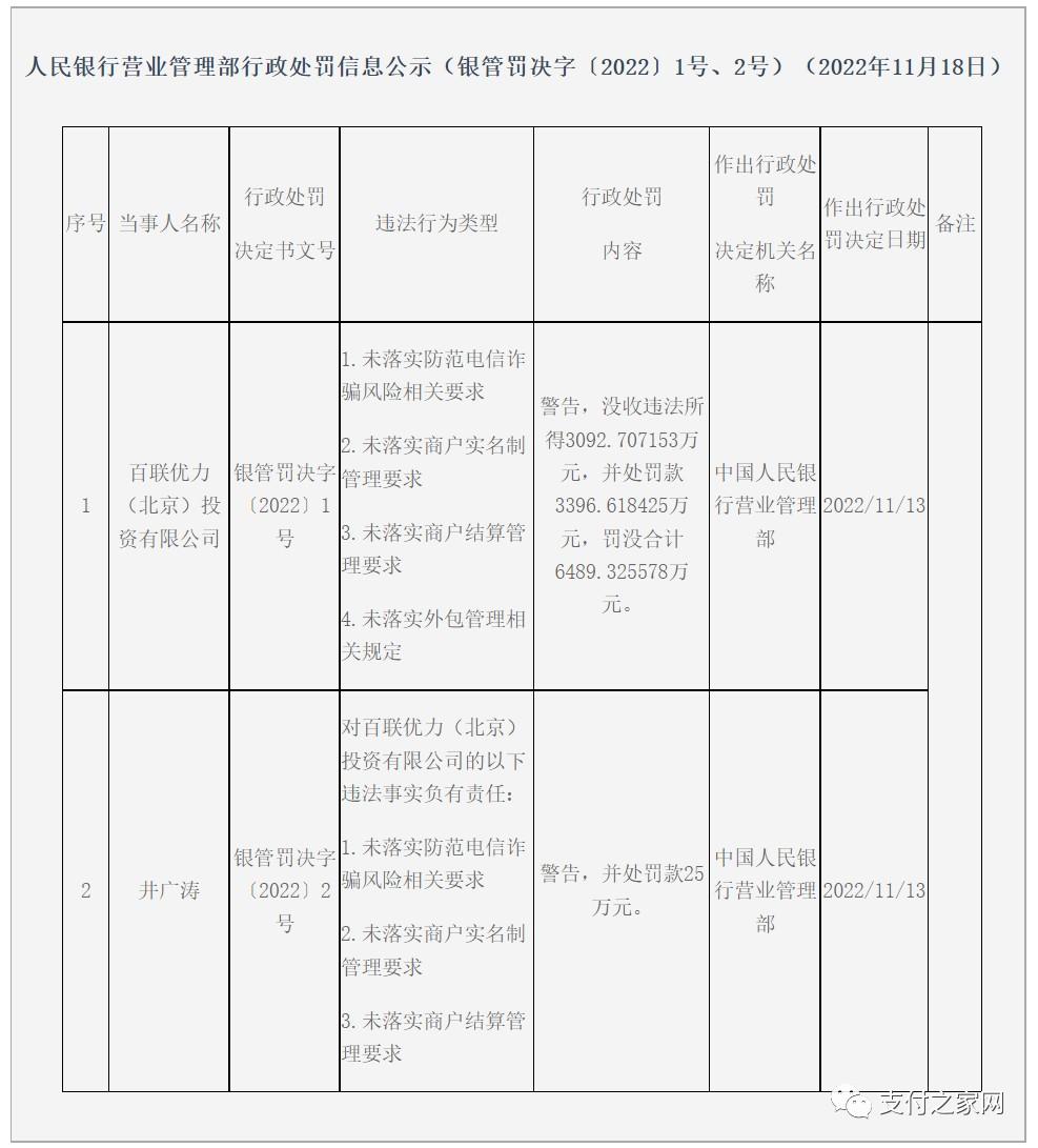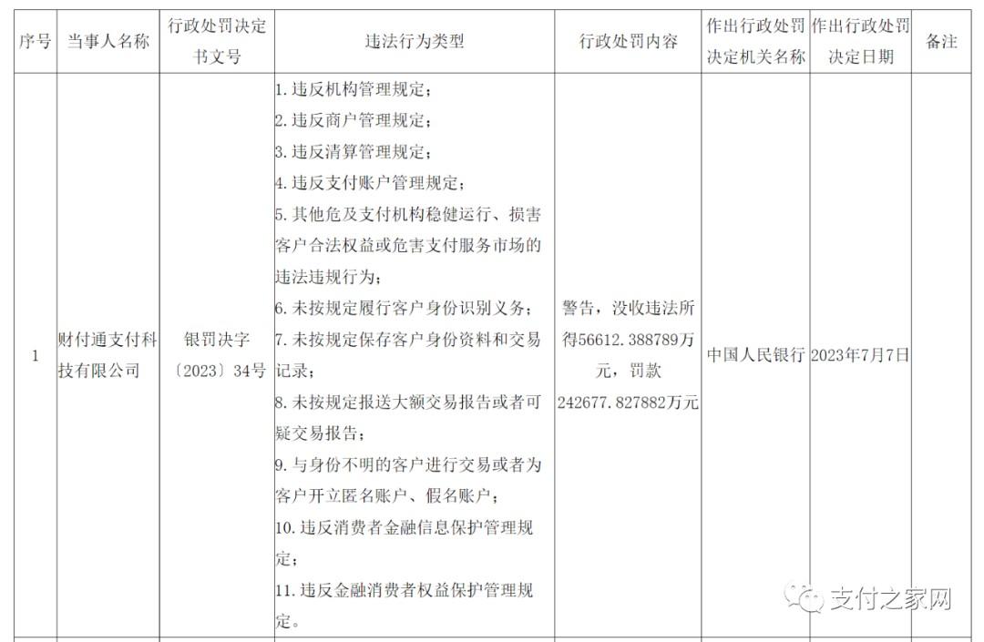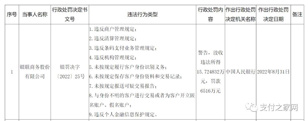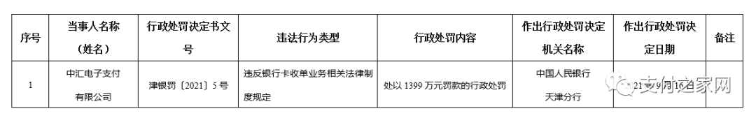 處罰事項(xiàng):違反支付業(yè)務(wù)規(guī)定。