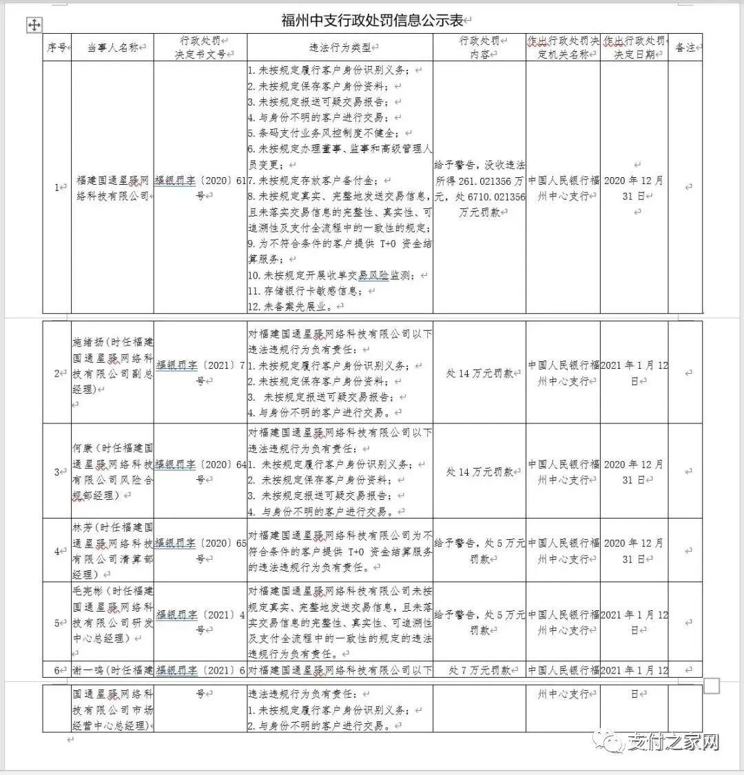 處罰事項(xiàng):1.未落實(shí)防范電信詐騙風(fēng)險(xiǎn)相關(guān)要求;2.未落實(shí)商戶實(shí)名制管理要求;3.未落實(shí)商戶結(jié)算管理要求;4.未落實(shí)外包管理相關(guān)規(guī)定。