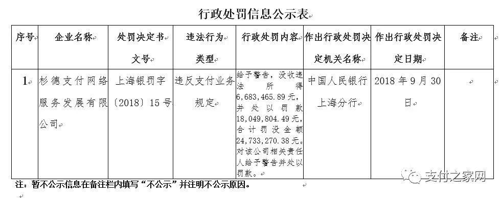 處罰決定書文號(hào):(銀支付)罰字〔2018〕第3號(hào)