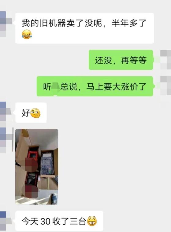 該代理手里的舊機器,一般都賣給常年合作的X總,X總是當?shù)鼗厥斩諴OS機的資深人世,據(jù)該老總稱,二手POS機馬上要大漲價了。