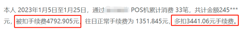 POS機刷24萬,多扣了近4800手續(xù)費,客戶欲哭無淚