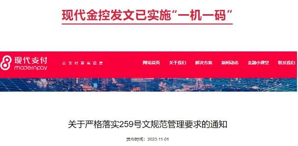現(xiàn)代金控發(fā)文已實(shí)施“一機(jī)一碼”