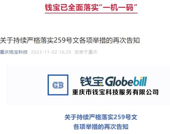 錢寶已全面落實(shí)“一機(jī)一碼”