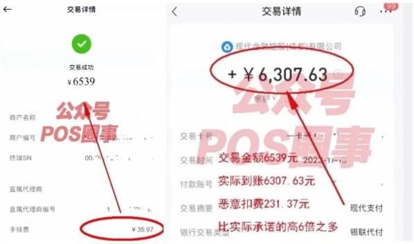 近日,有消費(fèi)者投訴現(xiàn)代金融控股(成都)有限公司利用POS機(jī)欺詐消費(fèi)者,辦理的POS機(jī)費(fèi)率寫的時(shí)0.55%,在刷卡交易明細(xì)里面也寫了明確的手續(xù)費(fèi),在系統(tǒng)消費(fèi)手續(xù)費(fèi)里面也有詳細(xì)的扣費(fèi)金額,可是在銀行卡到賬的金額里面卻暗藏玄機(jī),不仔細(xì)核對(duì)的人根本發(fā)現(xiàn)不了,他們居然惡意扣除高額費(fèi)用。