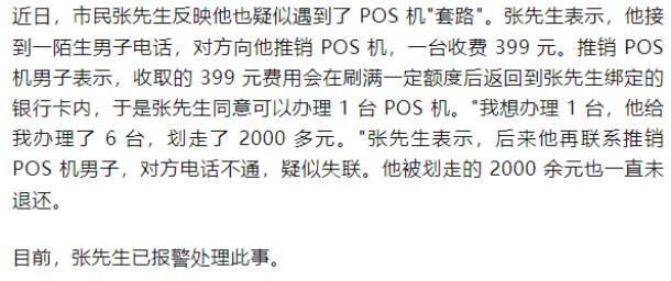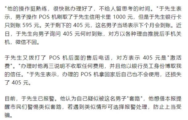 說是上門送贈(zèng)品卻變成推銷POS機(jī),莫名被扣 405 元“激活費(fèi)”