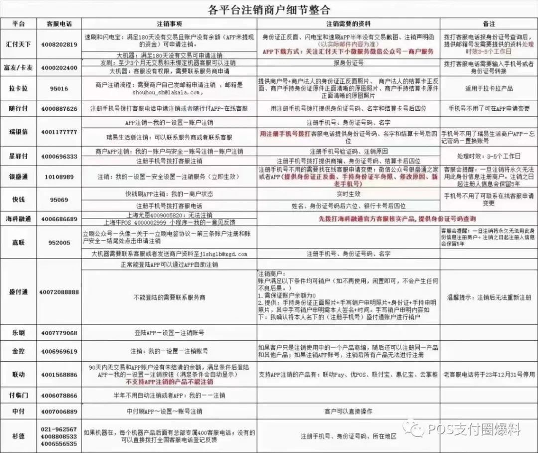 同一個(gè)身份證注冊的POS機(jī)數(shù)不得超15個(gè) lakala 2年前 ( 2023-11-16 ) 1156 最近,不少支付公司都要求同一身份證個(gè)人小微商戶POS機(jī)總數(shù)不得超過15戶,超過了就不能再注冊新機(jī)器了。 超過15個(gè),有的產(chǎn)品會提醒:同一個(gè)身份證注冊的小微商戶數(shù)不得超15個(gè)。 有代理商總結(jié)了17家支付公司的注銷方法,以及相關(guān)的細(xì)節(jié),可以供大家參考。 The End 標(biāo)簽:博主很懶,并沒有設(shè)置標(biāo)簽