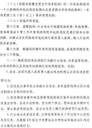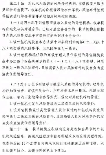 對于出現(xiàn)在黑名單的外包機構(gòu),收單機構(gòu)應(yīng)與該外包機構(gòu)終止合作,應(yīng)在正式解除合作協(xié)議后的30個自然日內(nèi)完成登記信息變更,登記合作終止實際日期信息及終止合作原因。