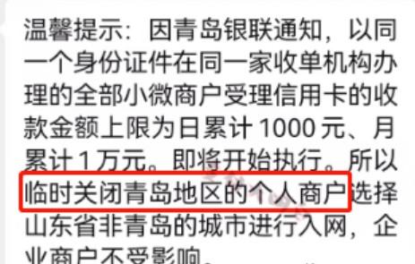 有的產品通知:臨時關閉青島的個人商戶,選擇山東省非青島的城市進行入網,企業(yè)商戶不受影響。