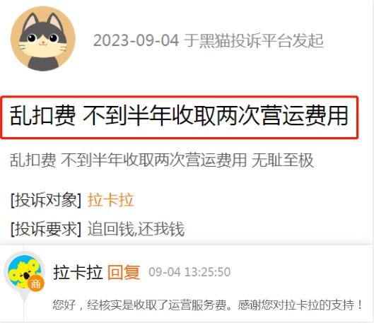 近日,用戶投訴拉卡拉POS機亂扣費,不到半年收取兩次運營服務(wù)費!