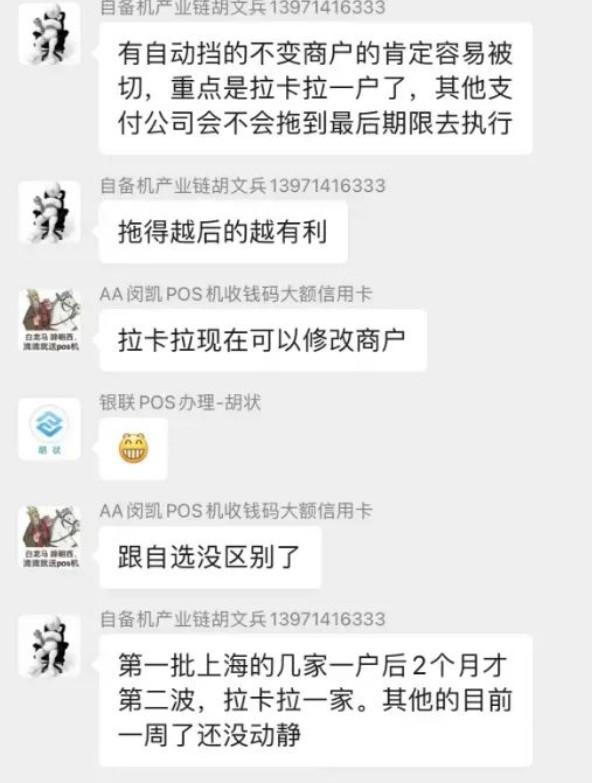 目前,259號(hào)文落地正在如火如荼的進(jìn)行當(dāng)中,很多支付公司都準(zhǔn)備拖到最后期限執(zhí)行,切掉先執(zhí)行的支付公司商戶(hù),而拉卡拉此舉無(wú)疑是反敗為勝。可以通過(guò)銀聯(lián)商戶(hù)報(bào)備變更其他支付公司的用戶(hù),反向思維,實(shí)在是高手!超高手!