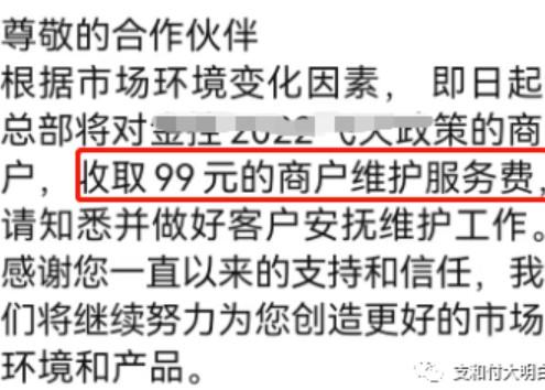 根據(jù)市場(chǎng)環(huán)境變化因素,X控飛天收取99的POS機(jī)商戶維護(hù)服務(wù)費(fèi)。