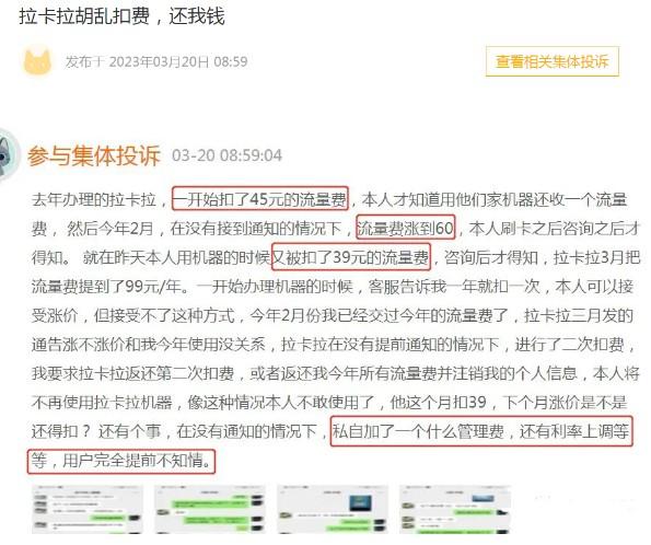 用戶投訴,拉卡拉POS機(jī)流量費(fèi)一漲再漲,甚至一年扣除兩次流量費(fèi),并且另外收取萬3管理費(fèi)。