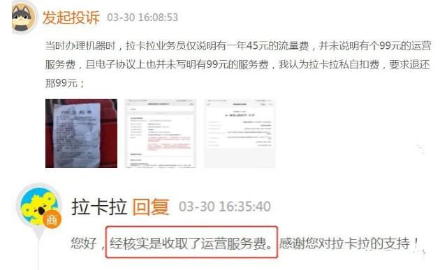 此前,拉卡拉官方通知,自3月4日起,運(yùn)營服務(wù)費(fèi)將調(diào)整至99元。雖然后來刪除了此通知內(nèi)容,但是其"運(yùn)營服務(wù)費(fèi)"確確實(shí)實(shí)在扣,并且引發(fā)了大量用戶投訴。