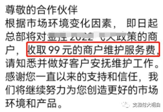 根據(jù)市場(chǎng)環(huán)境變化因素,X控飛天收取99的商戶維護(hù)服務(wù)費(fèi)。