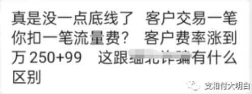 有代理商抱怨道:客戶費(fèi)率漲到萬250+99,這根詐騙有什么區(qū)別?