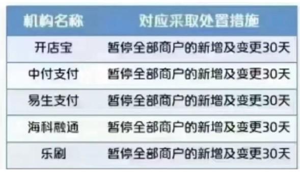 日前,一張有關(guān)12家支付公司被暫停商戶新增30天的圖片刷爆了朋友圈,其中有5家支付公司被暫停全部商戶新增!
