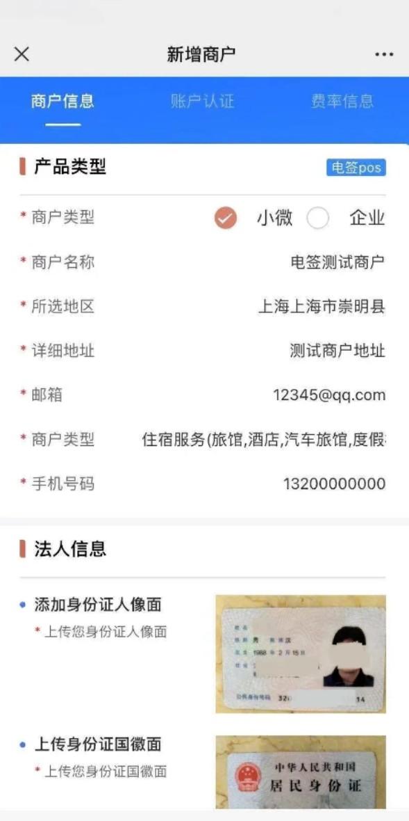 第一步:選擇商戶類型,填寫商戶店鋪信息,上傳商戶個(gè)人信息