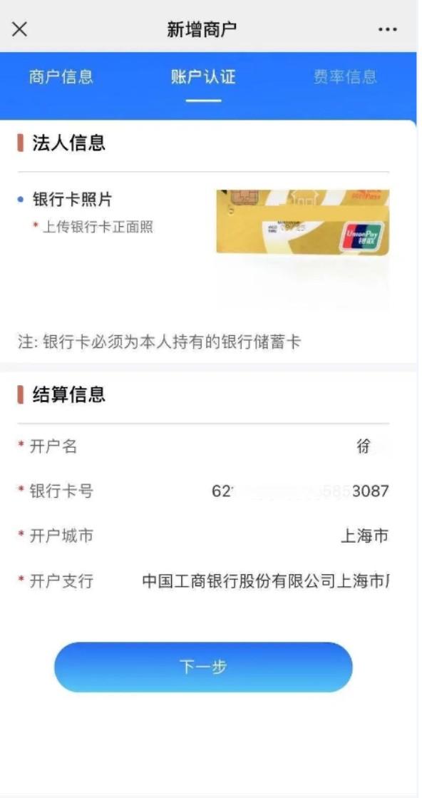 第二步:填寫商戶結(jié)算銀行賬戶信息