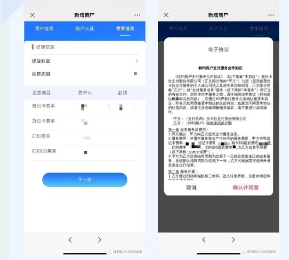 第三步:確認(rèn)費(fèi)率,同意并簽署商戶電子協(xié)議提交審核,等待審核通過