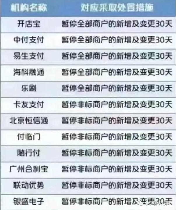 這是因為她們公司已經(jīng)被央行處罰了,主要原因就是沒有完全落實執(zhí)行259號文件。目前給出的處罰是一個月不能新增商戶。當然被罰的不止這一家,有十二家支付公司被罰。并且被處罰的支付公司中,已經(jīng)有支付公司給代理商發(fā)通知了,稱接下來將有30天的時間不能新增商戶了!
