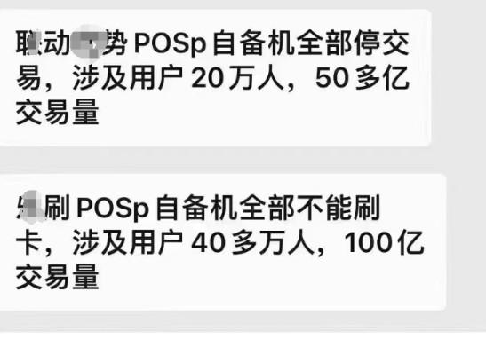 有消息人士表示某動POSP自備機將全部停止交易,涉及終端20萬臺。交易量就有50多億!而某刷POSP自備機就更多了,涉及40多萬臺。100多億交易量將消失!