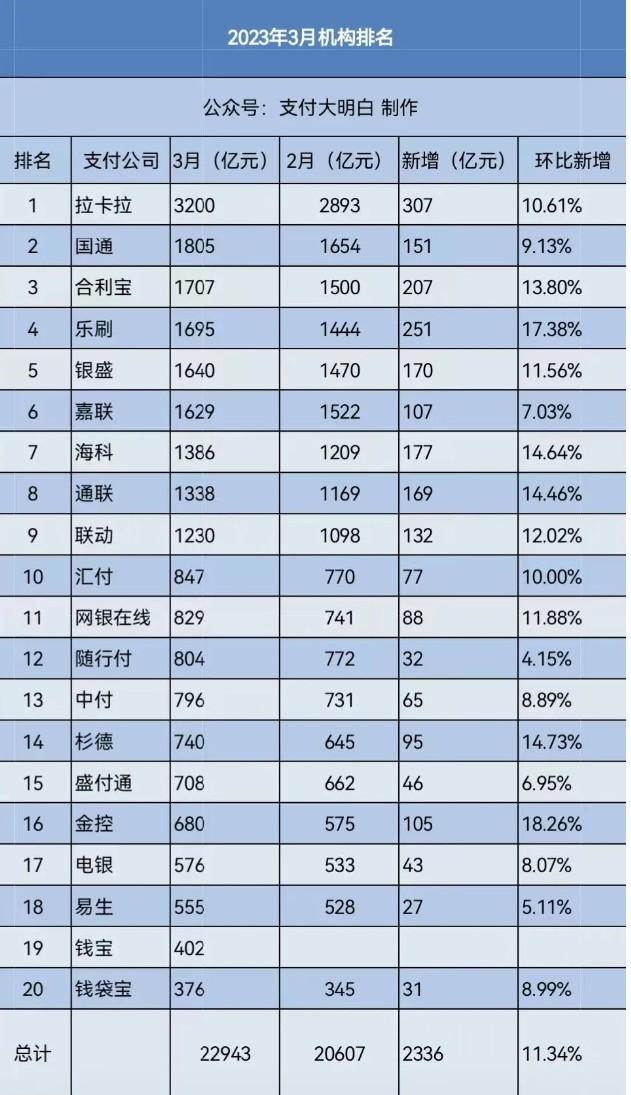 近日,11月交易量排名公布,月交易量過千億的支付公司僅僅剩下了5家,分別是:拉卡拉、合利寶、樂刷、國通和聯(lián)動。