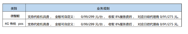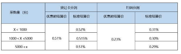 注:分潤(rùn)比例100%。借記卡結(jié)算價(jià):傳統(tǒng)pos&微智能0.3825%|17。