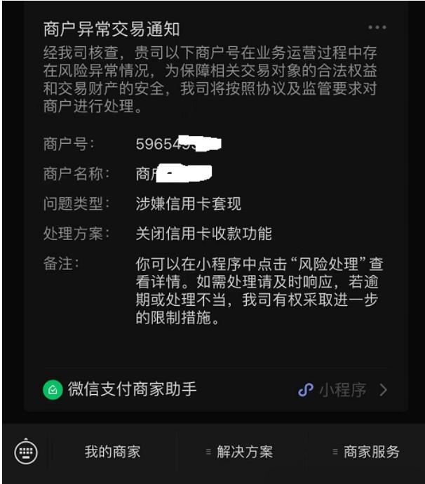 既然選擇你的通過(guò)微信來(lái)交易,就要接受微信的資金監(jiān)管。微信商戶被判定為“按照監(jiān)管要求管控”的風(fēng)險(xiǎn)類型,處理方式為“延遲結(jié)算,關(guān)閉支付權(quán)限”。