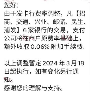 最近一段時間,走XX通道的產(chǎn)品問題不斷,先是用戶刷卡受限,恢復(fù)后,又有部分銀行交易手續(xù)費(fèi)在原有費(fèi)率基礎(chǔ)上再額外增加手續(xù)費(fèi);現(xiàn)在又出了要固定商戶這一說,看來不少人的碼牌要砸手里了......