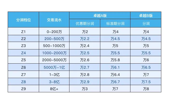 最高等級為Z9,交易流水達到8億以上便可享受最高萬8的分潤。