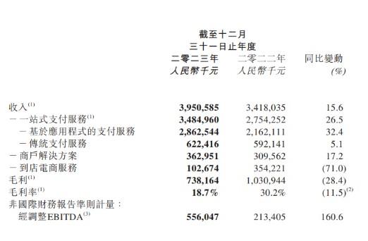 3月21日晚間,持牌支付公司樂刷母公司移卡有限公司發(fā)布2023年年度業(yè)績公告。2023年,移卡收入同比增長15.6%至39.50億元;反映核心經(jīng)營業(yè)務和財務表現(xiàn)的經(jīng)調(diào)整EBITDA(息稅折舊及攤銷前利潤)同比增長160.6%至5.56億元。