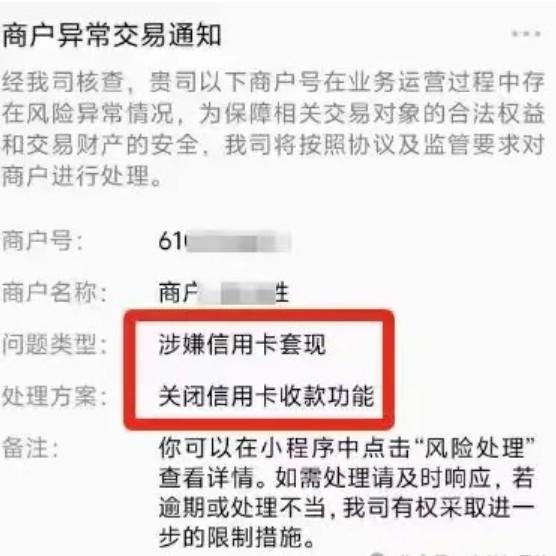 微信團(tuán)隊(duì)也在大批量關(guān)閉“涉嫌信用卡套現(xiàn)”的商戶,有代理一天十幾個(gè)用戶的碼牌被“關(guān)閉信用卡收款功能”。