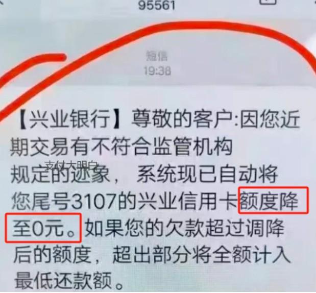 有人因:您近期交易有不符合監(jiān)管機(jī)構(gòu)規(guī)定的跡象,系統(tǒng)現(xiàn)已自動將您卡額度降至0元。