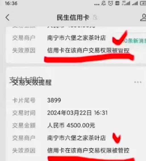 民生銀行:在該商戶交易權(quán)限被管控