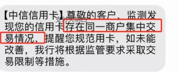 中信提示:監(jiān)測發(fā)現(xiàn)您的信用卡存在同一商戶集中交易情況。