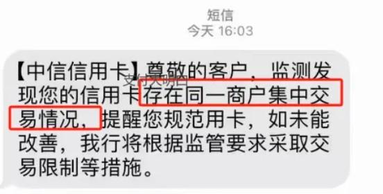中信提示:監(jiān)測(cè)發(fā)現(xiàn)您的信用卡存在同一商戶集中交易情況。
