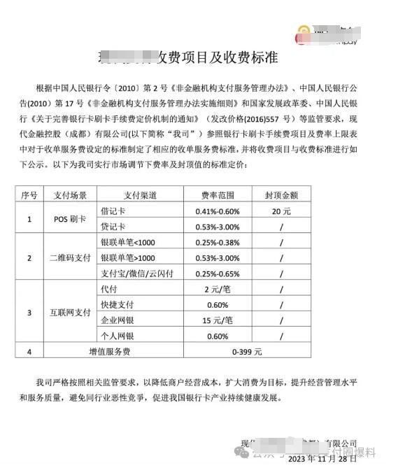 POS交易費率從0至3%,這么大的跨越空間,也沒有細則說明,什么用戶、什么時間是具體什么費率,用戶就算看到了收費公示,也是等于沒看。