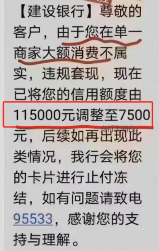用戶一:因您長(zhǎng)期單一商戶消費(fèi)不符合規(guī)定,系統(tǒng)已將您的卡所屬額度129800元永久調(diào)整至3000元。