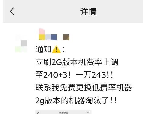 嘉聯(lián)立刷2G產(chǎn)品漲費(fèi)率,刷一萬扣240元手續(xù)費(fèi)