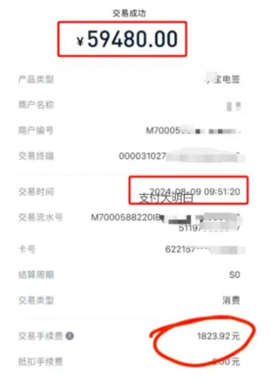還有客戶上午10點(diǎn)左右刷了59480,手續(xù)費(fèi)1823.92,計(jì)算一下費(fèi)率差不多是:萬(wàn)306