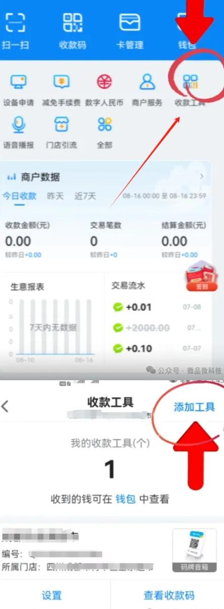 2、綁定商戶后,我們在拉卡拉APP首頁-收款工具-添加工具-掃碼綁定碼牌云音箱。(備注:云音箱自帶4G網(wǎng),開機即可聯(lián)網(wǎng)使用)