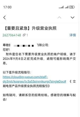 聽說還有多家支付公司要求小微商戶升級營業(yè)執(zhí)照,已經(jīng)下發(fā)了郵件通知。