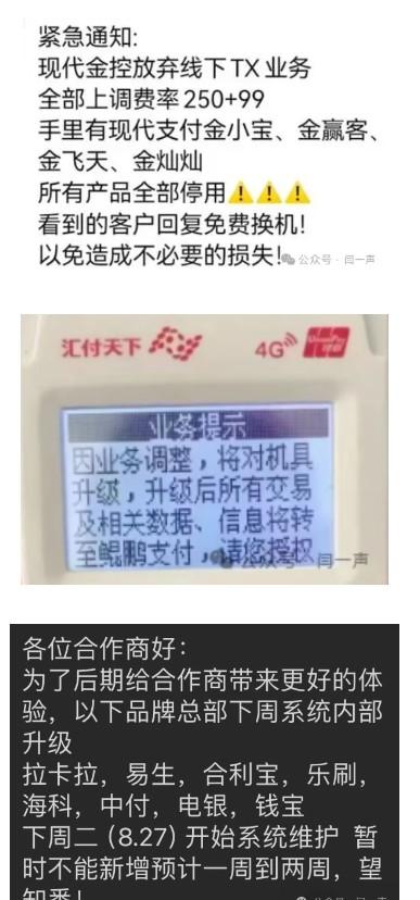 近日,接到通知,現(xiàn)代金控部分POS機商戶當天交易的不能秒到,自動更改為了次日到賬T+1出款。請各位知悉。